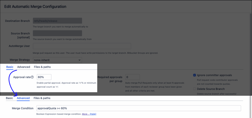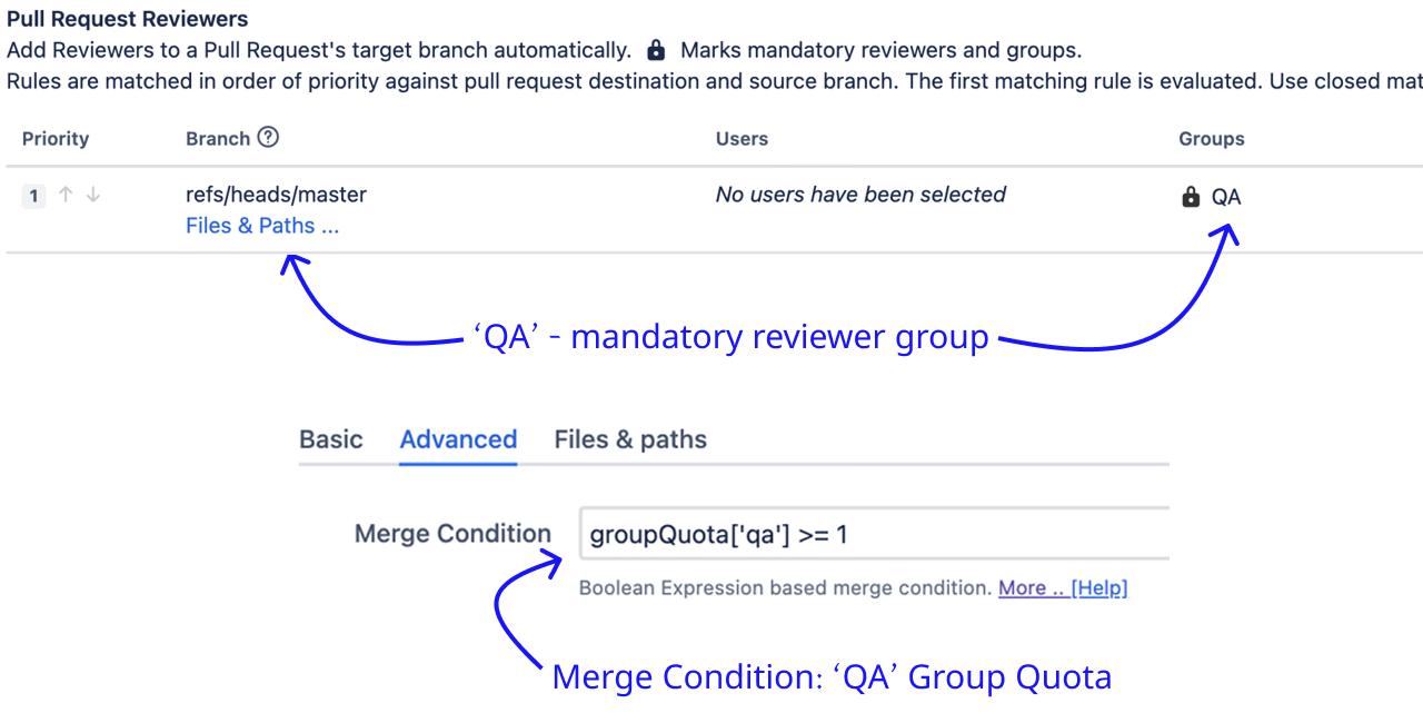 A group quota enforces that a minimum number of approvals must come from any reviewer group, or specific reviewer groups—such as backend, security, or qa.